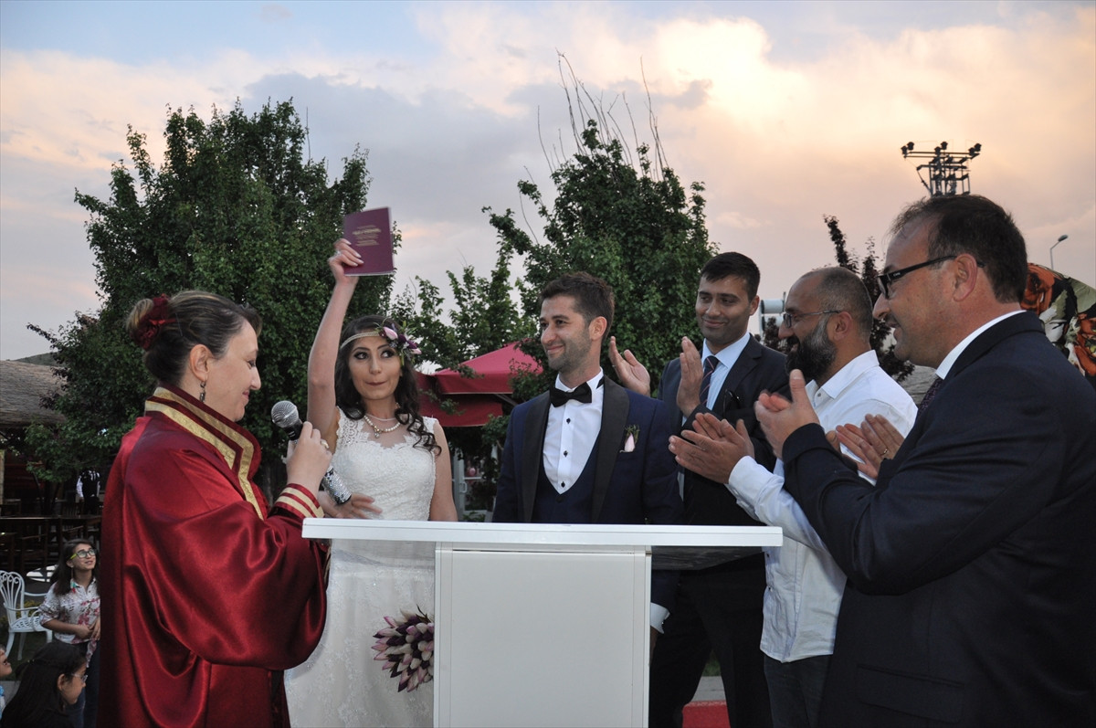 Daha sonra ATV'ye binerek düğünün yapılacağı salona geçen çift, kıyılan nikahla hayatlarını birleştirdi.