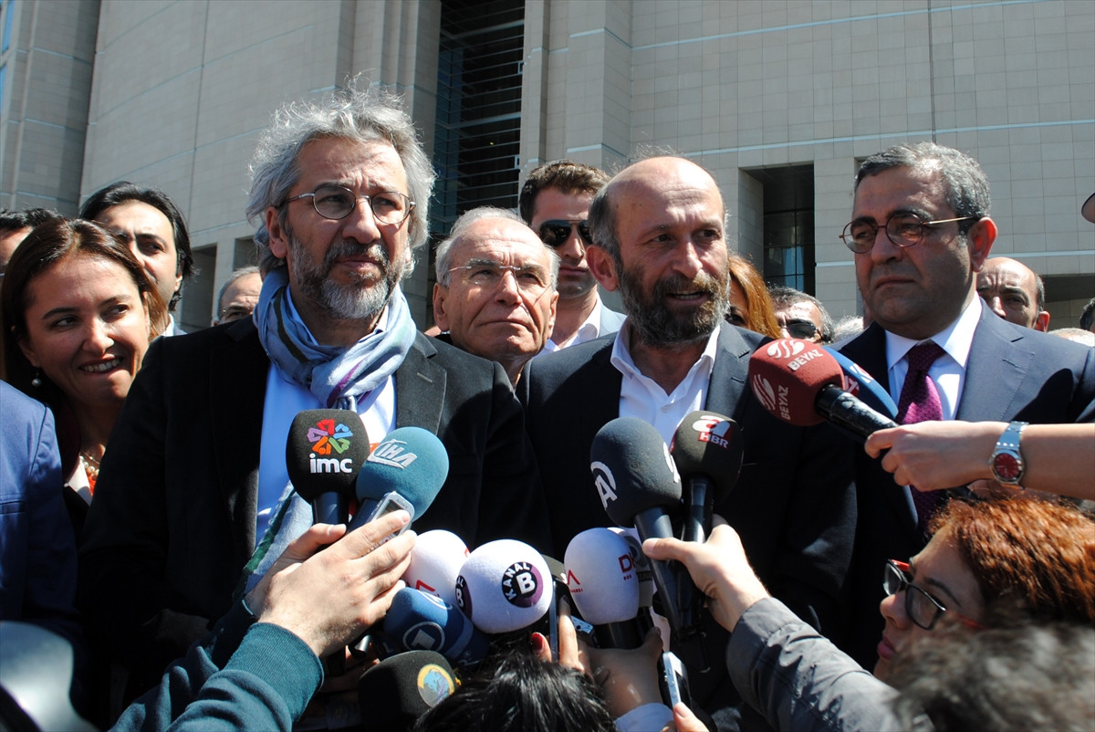 Duruşmanın bitmesinin ardından koridorda bekleyen kalabalıkla adliye önüne geçen sanıklar Dündar ve Gül, CHP milletvekilleri Enis Berberoğlu, Sezgin Tanrıkulu ve Mahmut Tanal ile açıklama yaptı.