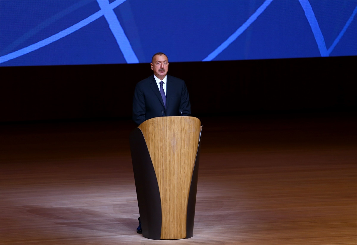 Cumhurbaşkanı Aliyev, Haydar Aliyev Merkezi'nde gerçekleştirilen kongrenin açılışında yaptığı konuşmada, ülkesinin başarılarından, Azerbaycan'da gerçekleştirilen uluslararası organizasyonlardan bahsederek bu başarılarda medya desteğinin önemini dile getirdi.