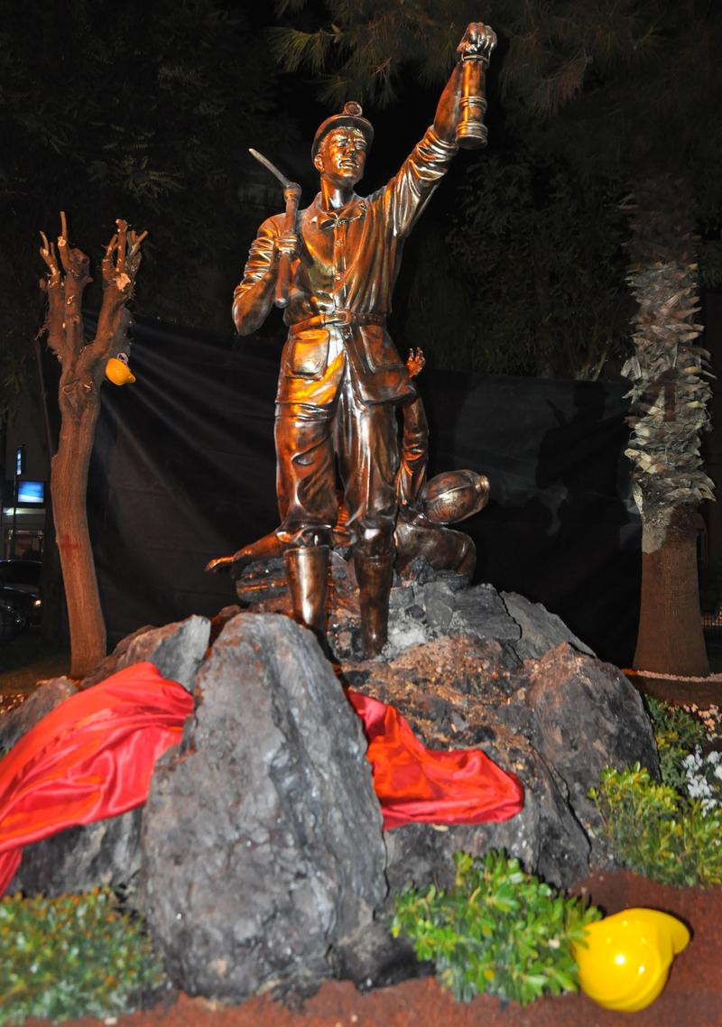 Daha sonra, Heykeltıraş Eray Okkan tarafından yapılan ve Soma'daki madenlerden getirilen kömürlerin üzerinde 4 madencinin yer aldığı heykelin açılışı gerçekleştirildi.