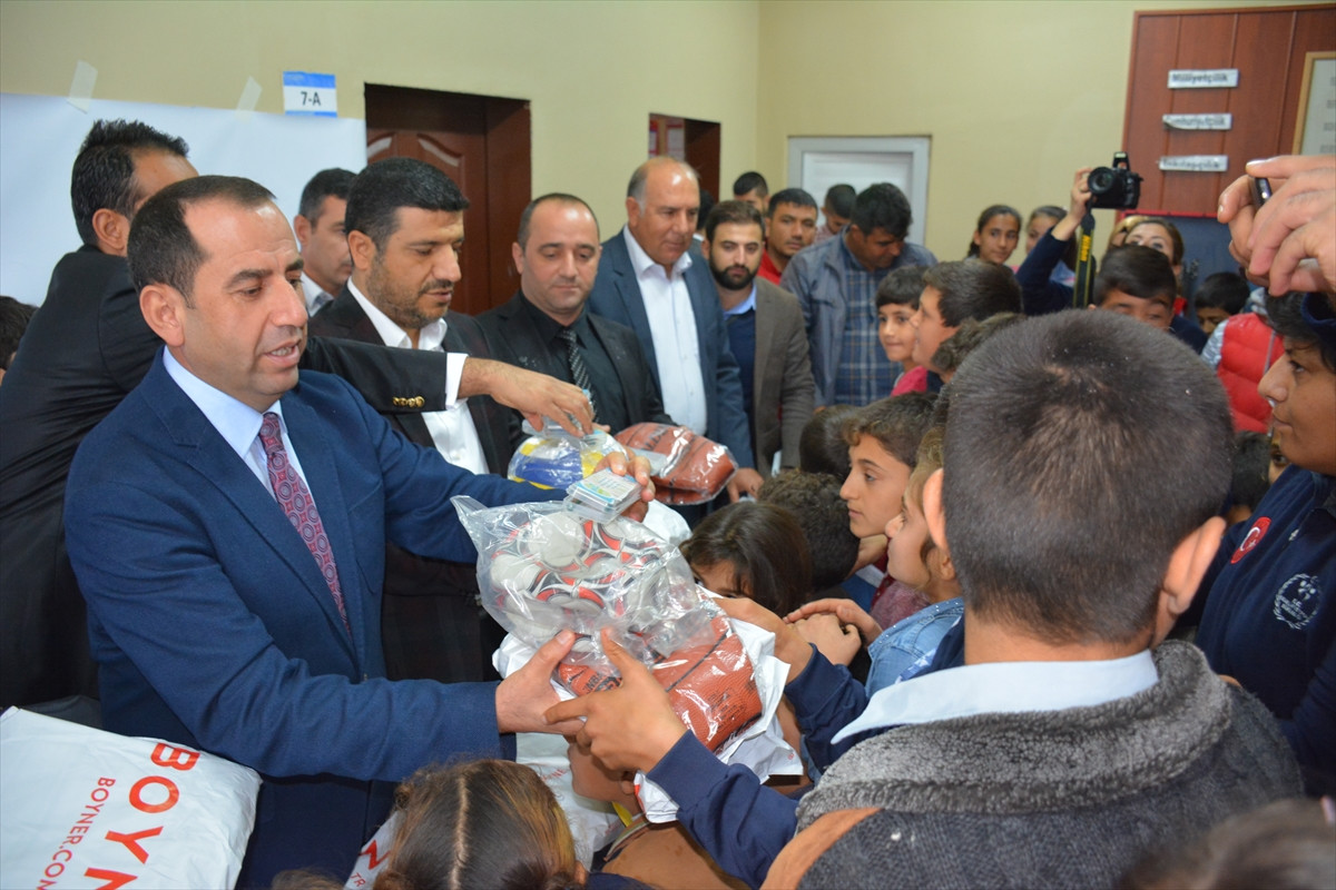 Demir ve beraberindekiler, terör saldırısında hayatını kaybedenlerin çocuklarına ve köydeki diğer öğrencilere spor malzemesi ve kırtasiye yardımı yaptı.