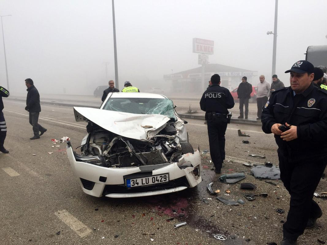 "Allah'a şükür durumu şu anda iyi. Arkadaşlar müdahale ediyorlar. Bilinci yerinde, ufak tefek yaraları var kazadan dolayı. Buna şükür diyoruz. Allah ailesine ve çocuklarına bağışlamış, geçmiş olsun. Kaza, ilk belirlemelere göre sisten dolayı görüş mesafesinin azlığı ile ilgili bir çarpışma. Şu anda ilk bilgiler bunlar. Bu hava koşullarında sürücülerin dikkatli olmasını istiyoruz."