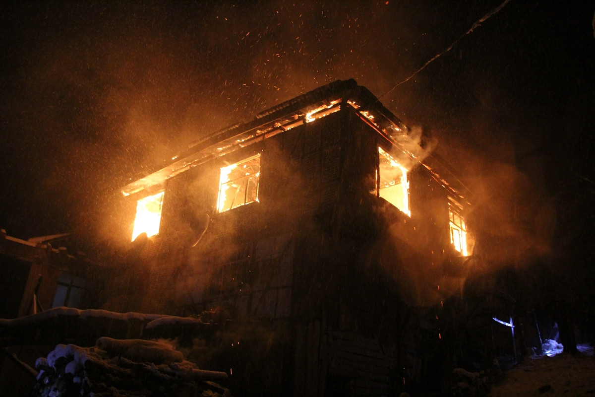 Edinilen bilgiye göre, ilçenin Aksaklar köyünde Recep Kurt, Mustafa Kurt, Kazım Kurt ve ailelerinin yaşadığı iki katlı evde henüz belirlenemeyen nedenle yangın çıktı.