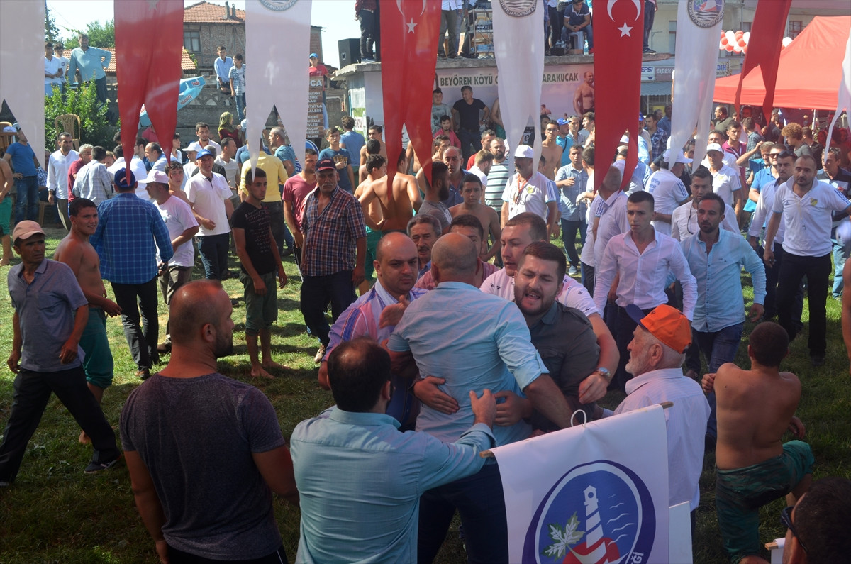 Çevredekilerin araya girmesiyle olay kısa sürede son bulurken güreş müsabakalarına devam edildi.