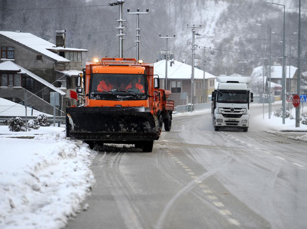 Karayolları ekipleri, güzergahlarda kar küreme ve tuzlama çalışması yapıyor.