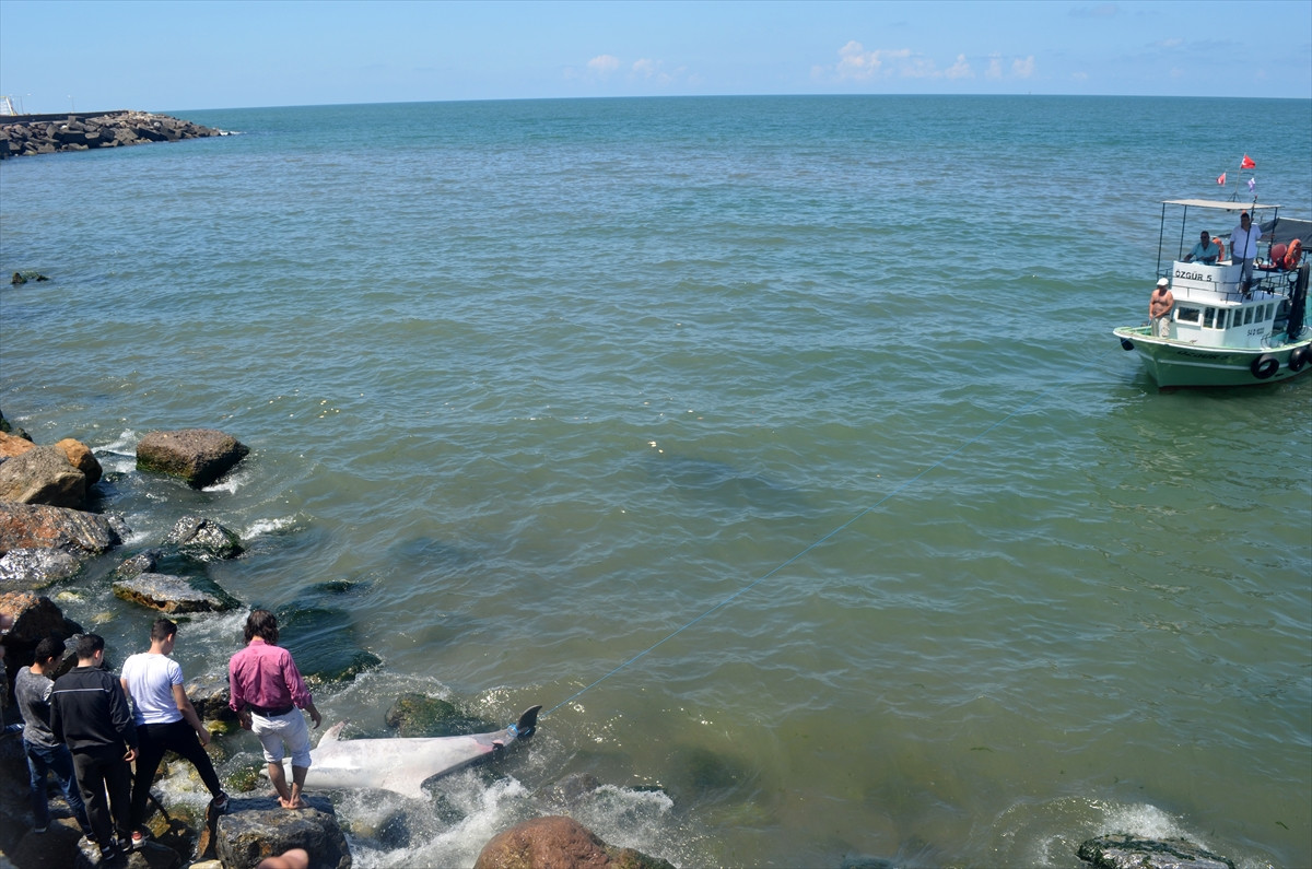 Alınan bilgiye göre, kıyıya vuran yaklaşık iki metre boyundaki yunusu gören vatandaşlar, durumu polis ekiplerine bildirdi. Sahile gelen ekipler, balıkçı teknelerinin de yardımıyla ölü yunusu alarak belediye ekiplerine teslim etti.