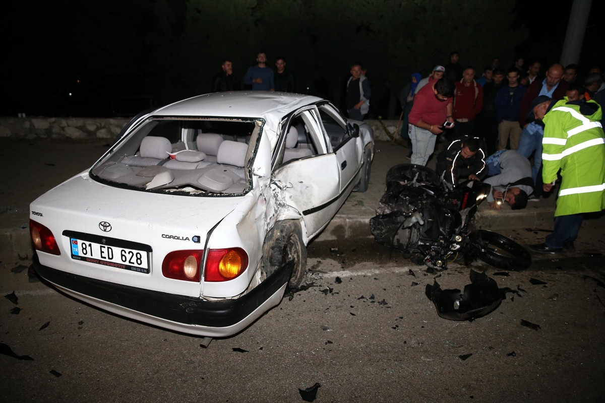 Alınan bilgiye göre, Caner Dal (25) idaresindeki 16 CGD 45 plakalı motosiklet, İstiklal Caddesi'nde mezarlık yakınındaki kontrolsüz kavşakta manevra yapan Selami Gürsoy'un kullandığı 81 ED 628 plakalı otomobile çarptı.