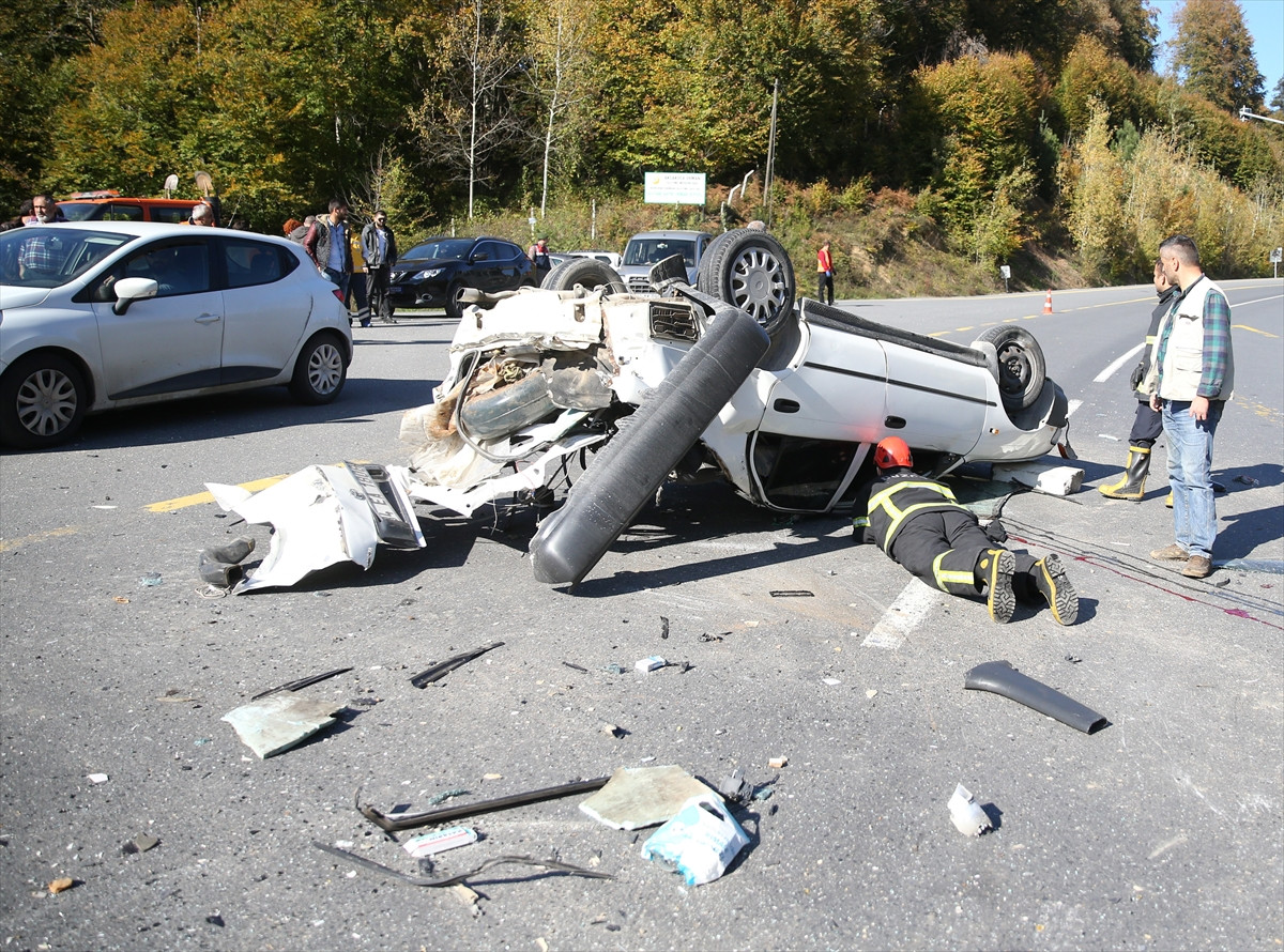 D-655 Karadeniz bağlantı yolu Hiciz rampası mevkisinden Akçakoca istikametine seyreden İsmail Pınar (44) idaresindeki 34 EA 1808 plakalı otomobil, takla atıp yönden gelen Şerif Ali Deniz'in kullandığı 81 KD 935 plakalı otomobilin üzerine devrildi.