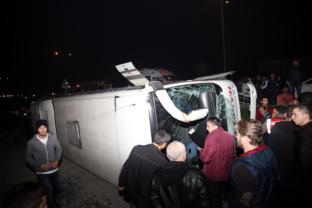 DÜZCE (AA) - Düzce'de yolcu otobüsünün devrilmesi sonucu, ilk belirlemelere göre 9 kişi yaralandı.