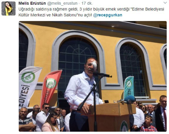 Edirne Belediye Başkanı Recep Gürkan, bugün Edirne Belediyesi Kültür Merkezi ve Nikah Salonu’nun açılış töreni öncesi bir şahsın fiziki saldırısına uğradı. CHP Genel Başkan Yardımcısı Tekin Bingöl saldırıyı twitter hesabından duyurdu. Bingöl “Recep Gürkan belediyecilikte başarının adıdır. Çirkin saldırıyı gerçekleştiren psikolojik sorunlu ve başkanın sahip çıktığı birisi.” dedi. Gözünden yaralandığı gözlenen Başkan Gürkan’ın saldırının ardından programına devam ettiği öğrenildi.