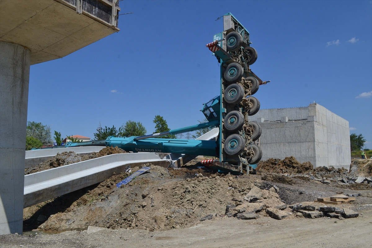 Alınan bilgiye göre, operatör Gökhan Bebek (30) idaresindeki vinç, ilçe girişinde yapımı devam eden köprülü kavşağın ayakları arasına konulacak 40'ar ton ağırlığındaki tabliyeleri yerleştirmeye başladı.