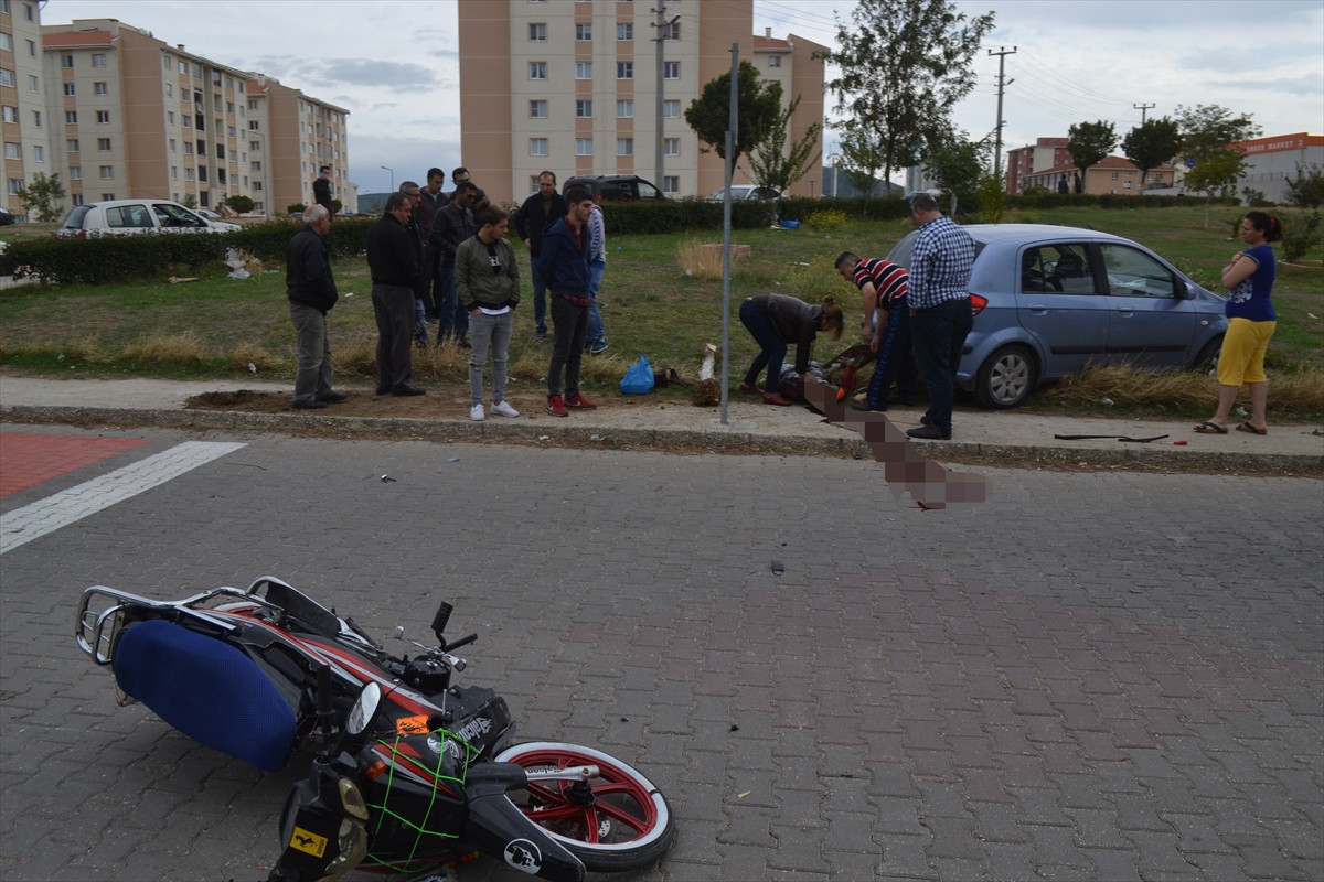 Alınan bilgiye göre, A.K. (64) yönetimindeki 22 RK 047 plakalı otomobil ile Tarık Menekşe'nin (16) kullandığı plakasız motosiklet, Gazi Sokak'ta çarpıştı.