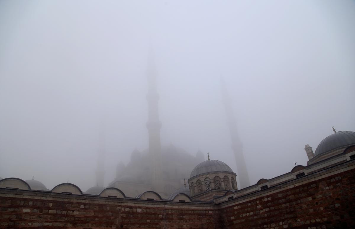 Tarihi pek çok yapı da sisin etkisiyle belli belirsiz görünürken, Selimiye Camisi ise bazı noktalardan görülemez hale geldi.