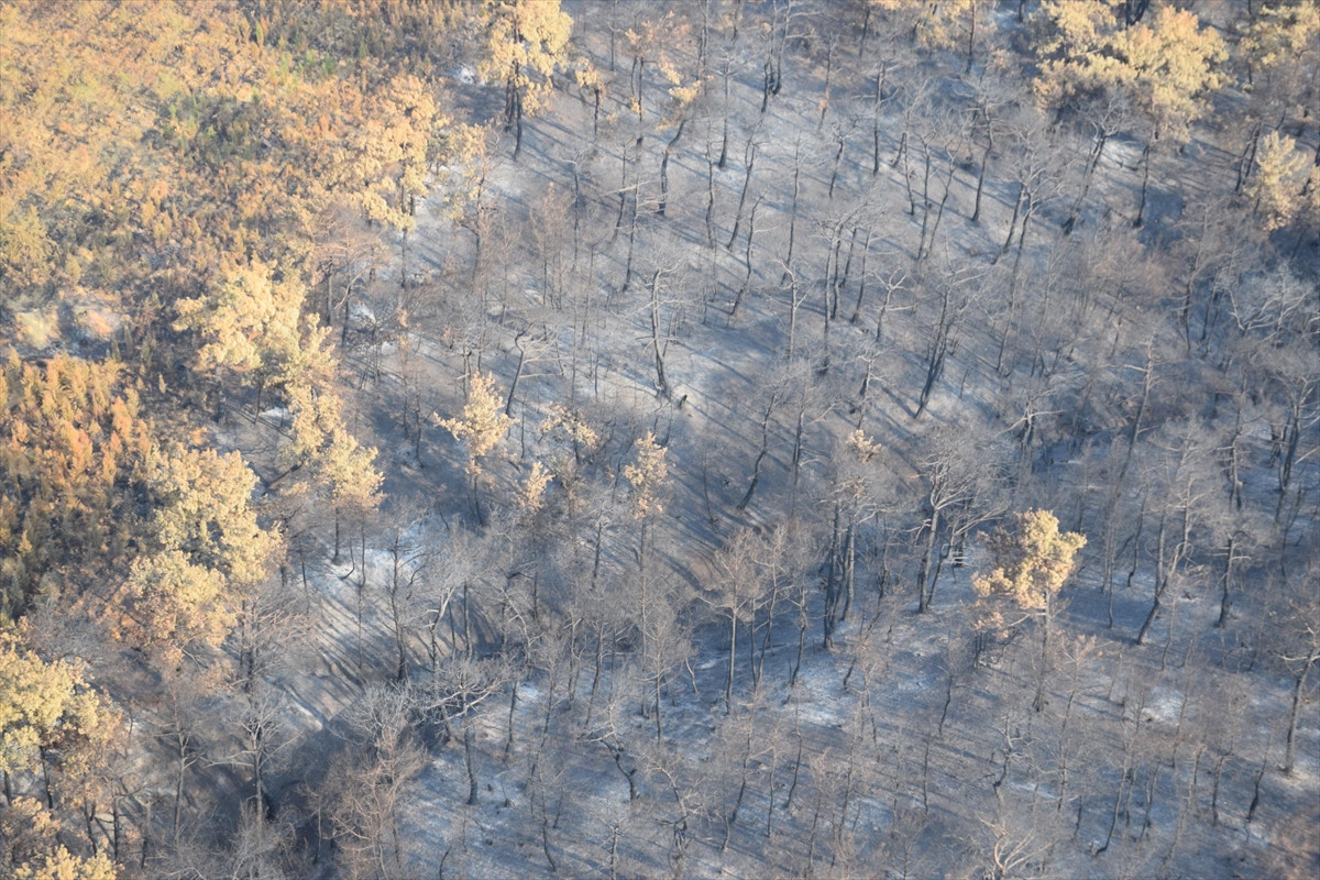 EDİRNE (AA) - Paramotor pilotu Yılmaz Özkaya, Keşan ilçesine bağlı Sazlıdere köyü yakınlarında 24 Haziran'da çıkan orman yangınında zarar gören alanları havadan görüntüledi.