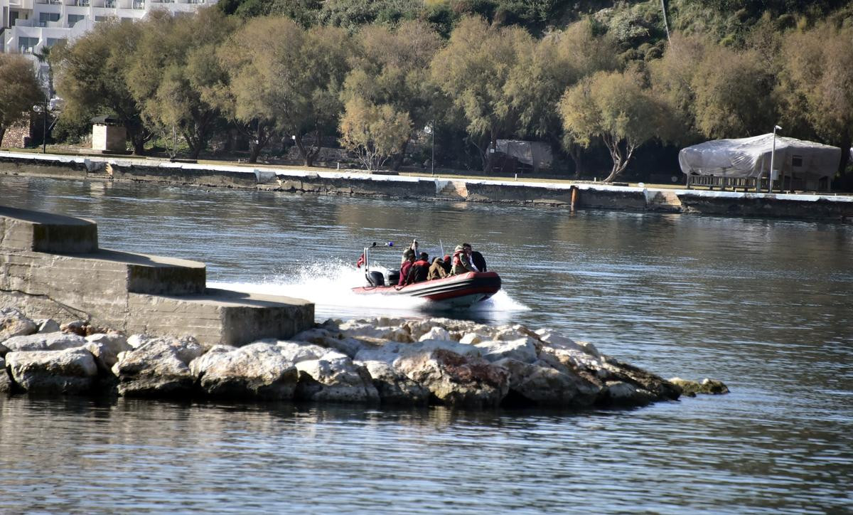 Kurulan bir çadırda kalan kaçaklar, karadan polis, denizden de botla yaklaşan sahil güvenlik ekiplerince yakalandı. Arazi yapısının zorluğu nedeniyle polis nezaretinde bota bindirilen kaçaklar, Bodrum Sahil Güvenlik Komutanlığına getirildi.