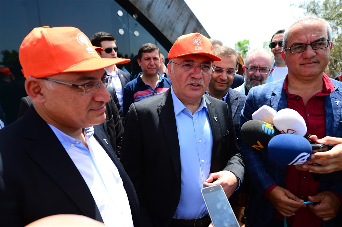 Ekonomi Bakanı Mustafa Elitaş, beraberinde Türkiye İhracatçılar Meclisi Başkanı Mehmet Büyükekşi ve Antalya Valisi Muammer Türker ile EXPO 2016 Antalya sergileme alanındaki Hindistan ve Katar'ın bahçelerini gezdi. Bahçeler ve ülkelerin botanik bitkileriyle ilgili bilgiler alan Elitaş, Hindistan bahçesini ziyareti sırasında yöresel bir çalgıyı üfledi. Hindistan bahçesindeki hediyelik eşyaları da inceleyen Elitaş, ardından "Süs Bitkileri ve Mamulleri İhracatçıları Birliği EXPO Antalya Yeşil Vaha" adlı bahçenin de açılış kurdelasını kesti. Orta Anadolu Süs Bitkileri ve Mamulleri İhracatçıları Birliği Başkanı Osman Bağdatlıoğlu'ndan bahçeyle ilgili bilgi alan Elitaş, kendisi adına dikilen zeytin ağacına toprak attı ve can suyunu verdi. Elitaş, burada gazetecilere yaptığı açıklamada, gittiği her ülkede EXPO 2016 Antalya'yı anlattığını ve bakanları Antalya'ya davet ettiğini söyledi. EXPO'nun çok güzel bir noktaya geldiğine dikkati çeken Elitaş, alanın oteller bölgesi ve havalimanına yakınlığı dolayısıyla "Antalya var oldukça yaşayacağına" inandığını kaydetti. Elitaş, alana gelen ziyaretçilerin tabiat ile buluşacağını ve dünya bahçelerinden örnekler görebileceğini vurguladı. Elitaş ve beraberindekiler daha sonra Türkiye İhracatçılar Meclisi'nin (TİM) bahçesinin açılışını yaptı ve bahçeyi inceledi.