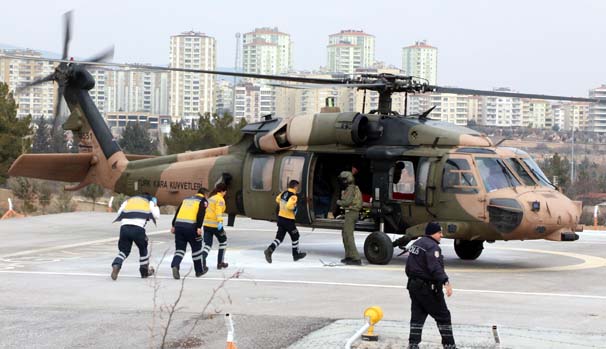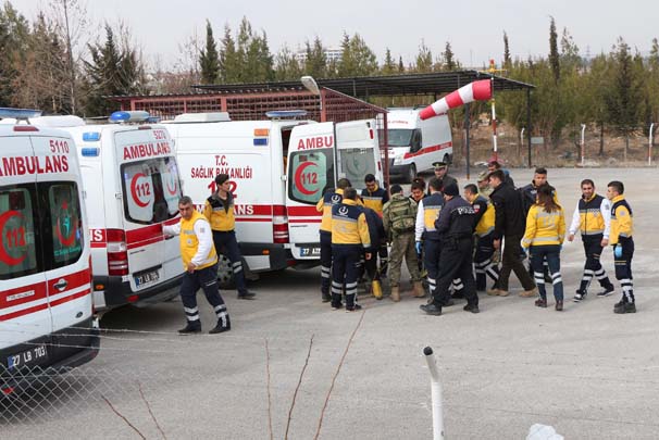 Suriye'de yürütülen Fırat Kalkanı Harekatı'nda terör örgütü DEAŞ militanları ile yaşanan çatışmada şehit olan 2 askerin Türk bayrağıyla bakrılı cenazeleri, helikopterle Gaziantep'e getirildi. Burada sağlık görevlileri tarafından ambulanslara taşınan cenazeler, otopsi işlemleri için morga götürüldü.