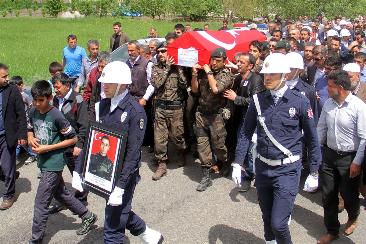 Muş'ta, terör örgütü PKK'nın yola döşediği el yapımı patlayıcının infilak etmesi sonucu şehit olan polis memuru Coşkun Özcan (28), memleketi Elazığ'da son yolculuğa uğurlandı. İl Emniyet Müdürlüğünde düzenlenen törenin ardından, şehidin Türk bayrağına sarılı naaşı merkeze bağlı Yurtbaşı beldesindeki Uluova Camisi'ne getirildi. Törene, 15 aylık bebeği İpek Sena ile katılan şehidin eşi Nida, annesi Müsevet ve babası Mustafa Özcan, tören boyunca gözyaşlarına hakim olamadı. Şehidin naaşı, öğle namazına müteakip İl Müftüsü Peyami Güngör'ün kıldırdığı cenaze namazının ardından Ak Mezra Mahallesi'ndeki aile kabristanına götürüldü. Yoğun bir katılımın gerçekleştirildiği törende, cenazeye katılan şehidin mesai arkadaşları ise cenazeyi tekbirler, dualar eşliğinde, vatandaşlarla birlikte "Şehitler ölmez vatan bölünmez" sloganlarıyla mezarlığa kadar omuzlarında taşıdı. Şehidin cenazesi, aile kabristanında toprağa verildi. Törene, şehidin ailesi ve yakınlarının yanı sıra Vali Murat Zorluoğlu, AK Parti Elazığ Milletvekili Ejder Açıkkapı, Belediye Başkanı Mücahit Yanılmaz, AK Parti İl Başkanı Ramazan Gürgöze, Emniyet Müdürü Nihat İşlek, şehidin mesai arkadaşları ile askeri ve mülki erkan katıldı. Dün, Muş-Varto Karayolu'nun ilçeye 15 kilometre mesafedeki Taşdibek köyü mevkisinde yola yerleştirilen el yapımı patlayıcının, özel harekat polislerini taşıyan zırhlı aracın geçişi sırasında infilak ettirilmesi sonucu polis memuru Coşkun Özcan şehit olmuş, 2 polis de yaralanmıştı.