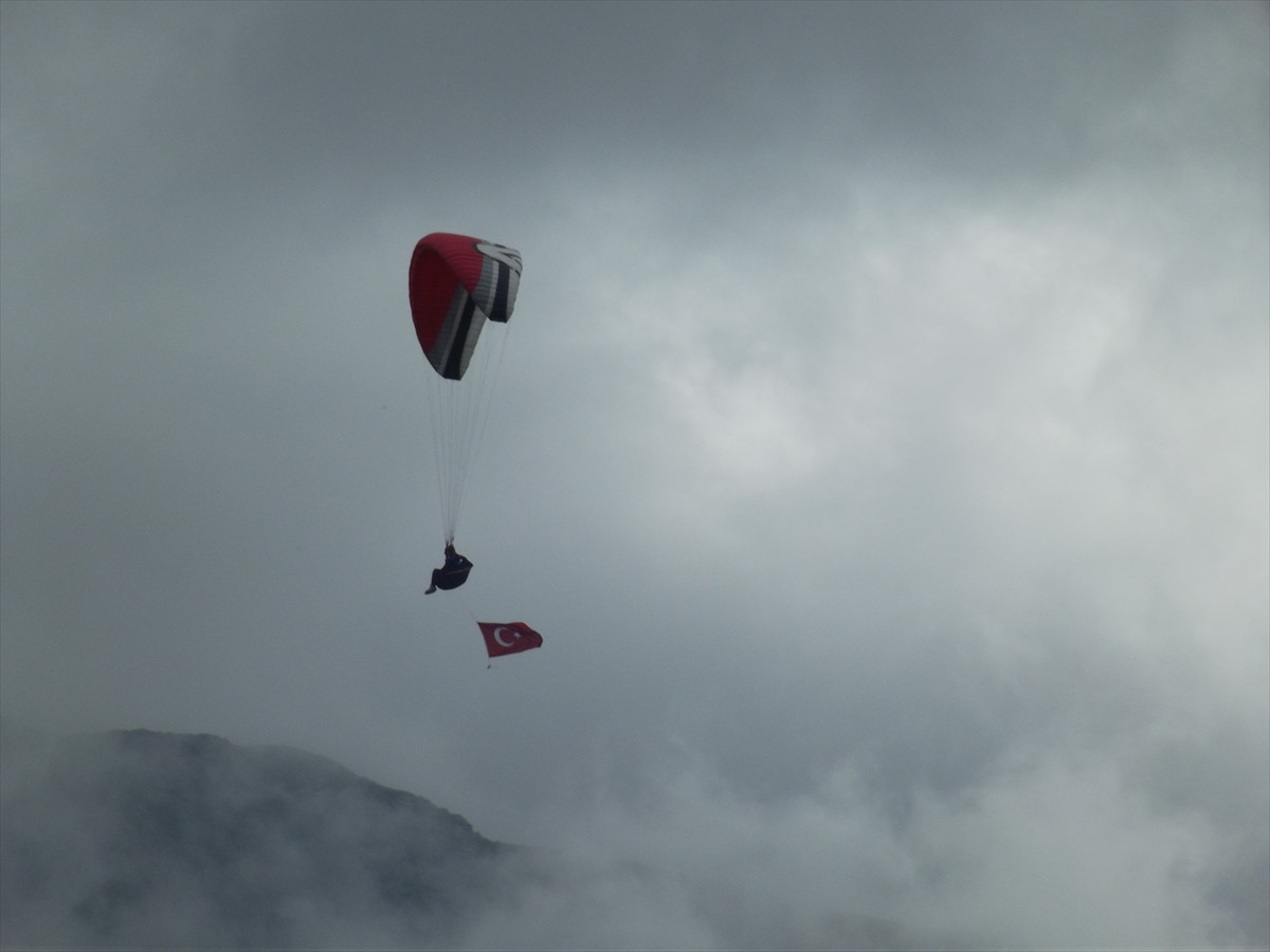 Öte yandan, Hazarbaba Dağı yamacında oluşturulan kalkış alanından 70 profesyonel paraşütçü havalandı. İlçe üzerinde süzülen paraşütçüler, renkli görüntülere sahne oldu.