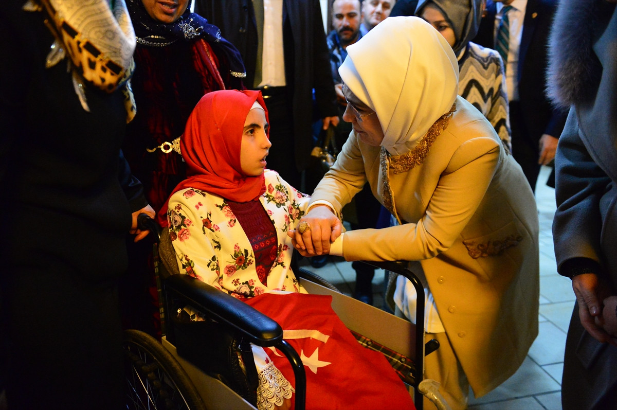 Cumhurbaşkanı Erdoğan'ın Şanlıurfa temasları kapsamında kente gelen Emine Erdoğan, tarihi Balıklıgöl Yerleşkesi yakınlarında açılışı yapılacak Yeşilay Danışmanlık Merkezi Eyyübiye Hizmet Binası'na gelişinde kendisini karşılayanlar arasında tekerlekli sandalyedeki bedensel engelli Emine Dağ'ı fark etti.