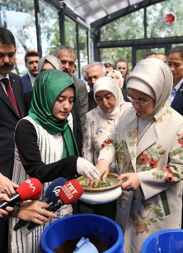 Cumhurbaşkanı Recep Tayyip Erdoğan'ın eşi Emine Erdoğan himayesinde yürütülen, Çevre ve Şehircilik Bakanlığı tarafından koordine edilen Sıfır Atık Projesi geçtiğimiz Haziran ayında TBMM'de de uygulanmaya başlandı. Emine Erdoğan beraberinde Çevre ve Şehircilik Bakanı Mehmet Kurum ve Meclis Başkanı Binali Yıldırım'ın eşi Semiha Yıldırım ile birlikte TBMM'de sera alanına kurulan Atık Geçici Depolama Alanını ziyaret etti. Emine Erdoğan, Çevre Mühendisi Hatice Akmaz'dan konuyla ilgili bilgi aldı. Emine Erdoğan, çay ve sebze atıklarının değerlendirildiği Kompost Ünitesini inceleyerek elde edilen gübre niteliğindeki toprağın özelliklerine ilişkin bilgi aldı. Atık sistemiyle ilgili fotoğrafları inceleyen Emine Erdoğan daha sonra Meclis'in serasını gezerek, uzmanından üretilen çiçeklerin özelliklerini dinledi.