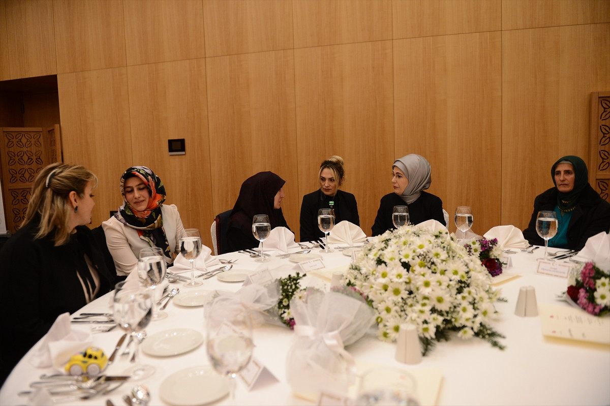 Trabzon ziyaretinde Cumhurbaşkanı Erdoğan'a refakat eden Emine Erdoğan, valilik tarafından şehit aileleri için kentte bir otelde verilen yemeğe katıldı.