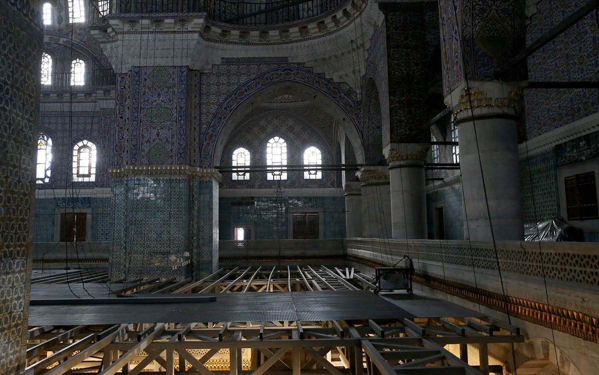 "Caminin kubbe yüksekliğinden de faydalanarak, alt tarafta ibadetin devam edebileceği bir platform kuruyoruz. Cemaatin ibadetini cami içerisinde, restorasyon çalışmalarını engellemeden yapabilmesi için içine demir kutu profilden, 5 metre yükseklikte, ses, toz ve su geçirmez çalışma platformu yapılıyor. Çalışmalar kapsamında mart sonundan itibaren bunlara ağırlık verdik. Namaz, şimdi avluda kılınıyor. Yaklaşık bir ay içerisinde alt katı tekrar ibadete açmış oluruz. Ondan sonra da üst mekanda restorasyon devam etmiş olacak."
