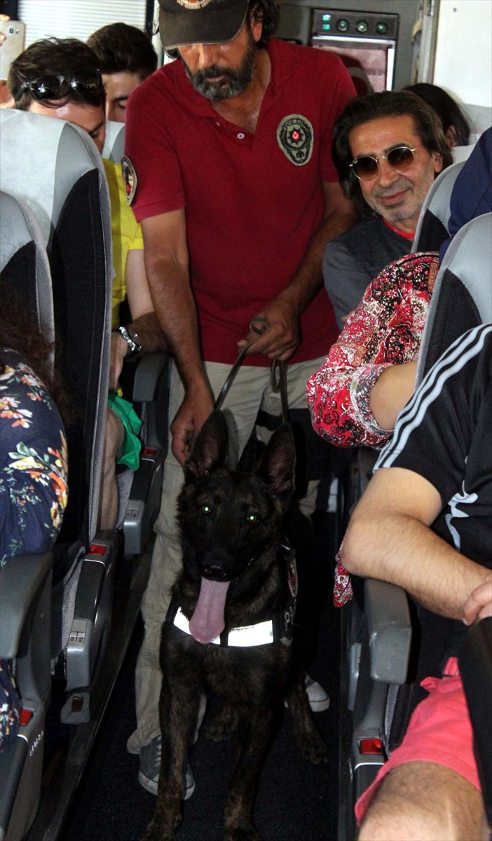 Polis ekipleri bir taraftan ikramlarda bulunurken bir taraftan da durumundan şüphelendikleri araçlarda arama yaptılar. Polis köpeği Dzok eşliğinde yapılan kontrollerde toplu taşıma araçlarında aramalar gerçekleştirildi.