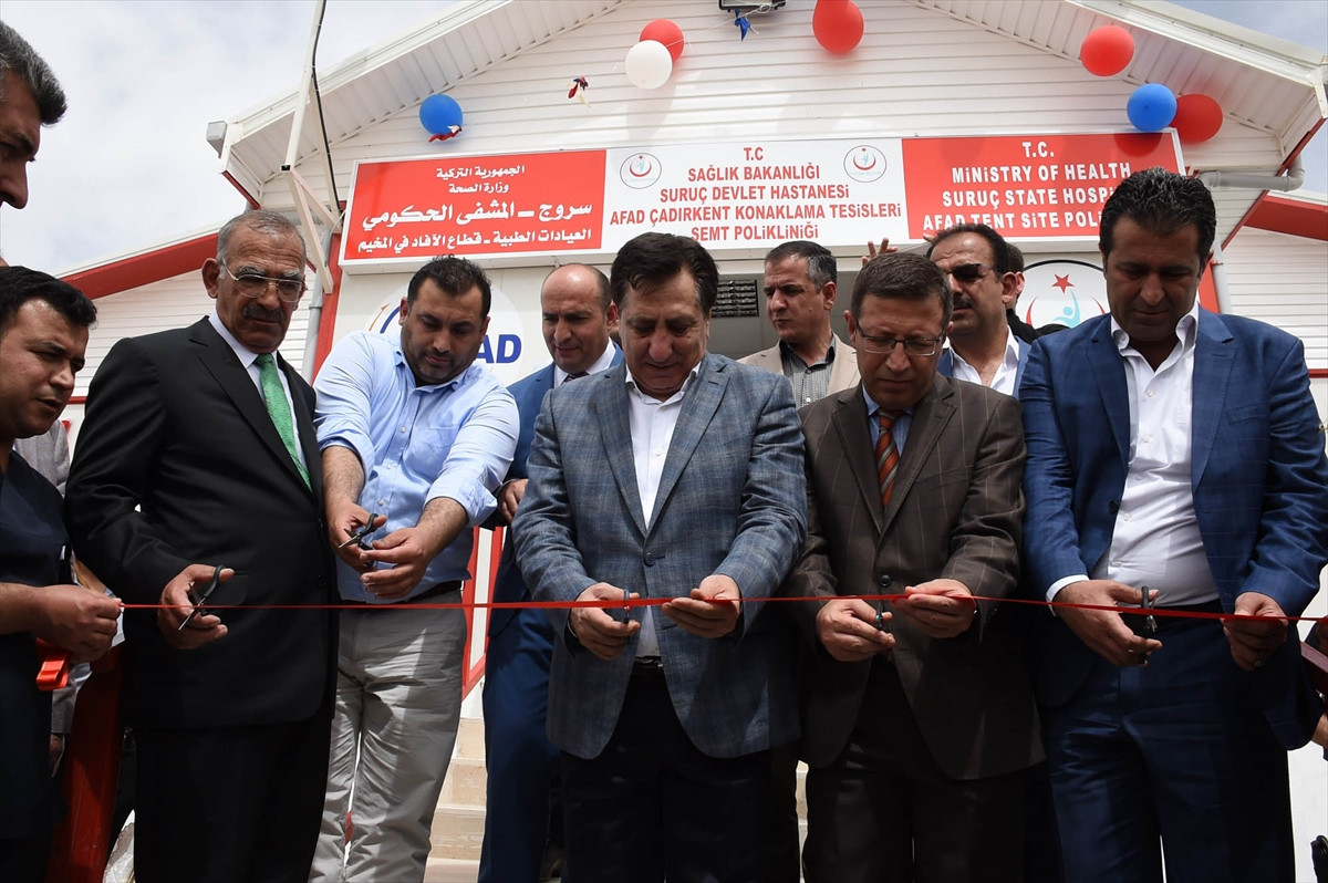 ŞANLIURFA (AA) - Şanlıurfa'nın Suruç ilçesindeki çadır kentte tam donanımlı hastane törenle hizmete açıldı.Türkiye'nin en büyük çadır kenti olma özelliğini taşıyan ve yaklaşık bir yıl önce kurulan 35 bin kişi kapasiteli Suruç Konaklama Tesisi'ndeki sağlık imkanları artırıldı.Halen 28 bin sığınmacının barındığı kampta daha iyi şartlarda sağlık hizmeti verilmesi amacıyla geçen yıl yapımına başlanan tam donanımlı prefabrik hastane tamamlandı.Vali İzzettin Küçük, açılış töreninde yaptığı konuşmada, Suriyeli misafirlere daha iyi hizmet sunmak için yoğun çaba gösterdiklerini söyledi.Küçük, hastanenin 24 saat hizmet vereceğini vurguladı. Suriyelilerin sağlık durumunun kendileri için önemli olduğunu aktaran Küçük, "Çadır kentteki sağlık hizmetleri bundan böyle daha güçlü bir şekilde yürütülecek. Bugüne kadar sahra hastanesinde 133 bin hastaya bakıldı ve 800 çocuk sünnet ettirildi. Şu anda bir hastanede olması gereken her türlü imkan çadır kente taşındı." dedi.Küçük ve beraberinde Suruç Kaymakamı Abdullah Çiftçi, açılışın ardından hastanede tedavi görenleri ziyaret ederek doktorlardan bilgi aldı.Yaklaşık 800 bin metrekare alan üzerine kurulu prefabrik hastanenin 680 bin liraya mal olduğu öğrenildi.