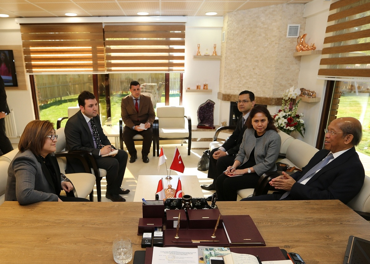 GAZİANTEP (AA) - Temaslarda bulunmak üzere Gaziantep'e gelen Endonezya'nın Ankara Büyükelçisi Wardana, Büyükşehir Belediye Başkanı Fatma Şahin'i ziyaret etti.Büyükşehir Belediyesinden yapılan yazılı açıklamaya göre, Şahin görüşmede, Endonezya ile karşılıklı çalışma modeli oluşturacaklarını ve Gaziantep'in turizm altyapısı, ekonomisi, gastronomisinden daha fazla istifade edilebilmesini sağlayacaklarını belirterek, bu amaca ulaşmak için bu ülkenin bir kenti ile "kardeş şehir" protokolü imzalayacaklarını bildirdi.