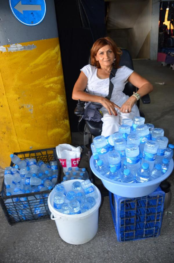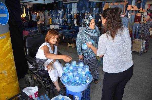 AYDIN'ın Nazilli ilçesinde yaşayan bedensel engelli 50 yaşındaki Emine Karakış, 10 yaşındaki kızının eğitimi ve ev ekonomisine katkı sağlamak için bulduğu her işte çalışıyor. Son dönem havanın sıcak olduğu günlerde pazarda su satan Karakış, tek arzusunun sürekli çalışabileceği bir işyerinde istihdam edilmek olduğunu söyledi.