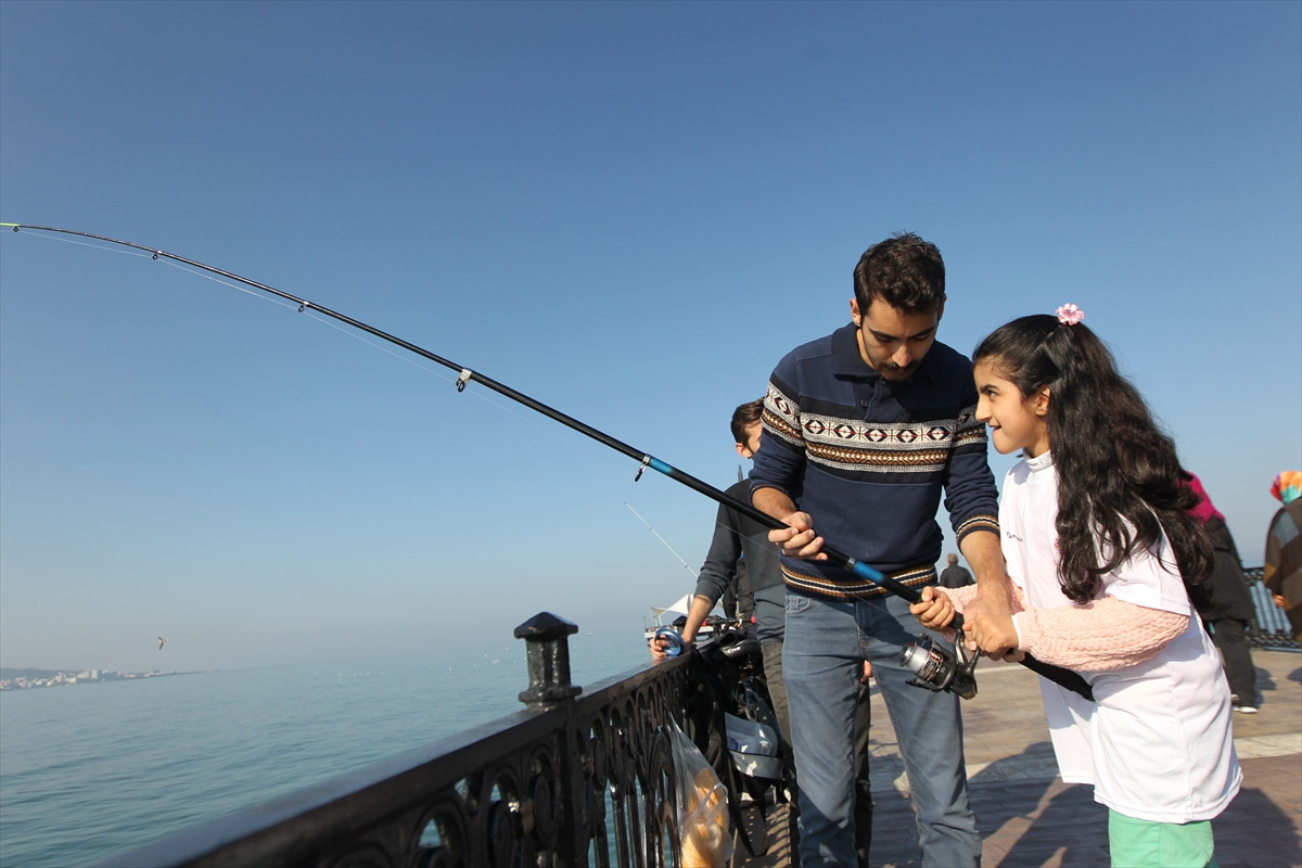 Zihinsel Yetersiz Çocukları Yetiştirme ve Koruma Vakfı Samsun Şubesince Atakum ilçesinde düzenlenen etkinlikte gönüllüler, down sendromlu, zihinsel engelli ve otizmli 10 çocuk ile iskeleden olta attı ve balık tutmaya çalıştı.