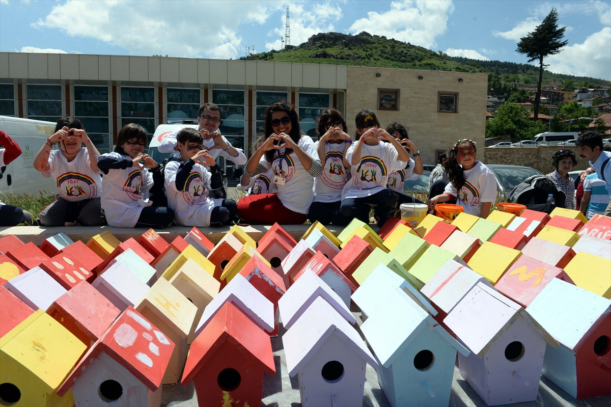TOKAT (AA) - Tokat'ta Engelliler Haftası dolayısıyla düzenlenen etkinlikte, aralarında down sendromlu, otistik ve zihinsel engelli çocukların da yer aldığı öğrenciler, 400 kuş yuvasını boyadı.