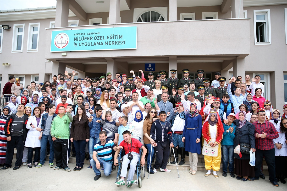 Serdivan ilçesindeki Nilüfer Özel Eğitim İş Uygulama Merkezi bahçesinde düzenlenen programda, özel öğrenciler halk oyunları gösterisi sundu. Öğrenci velileri ile İl Jandarma Komutanlığında görevli askerler de öğrencilerle davul zurna eşliğinde halay çekti.