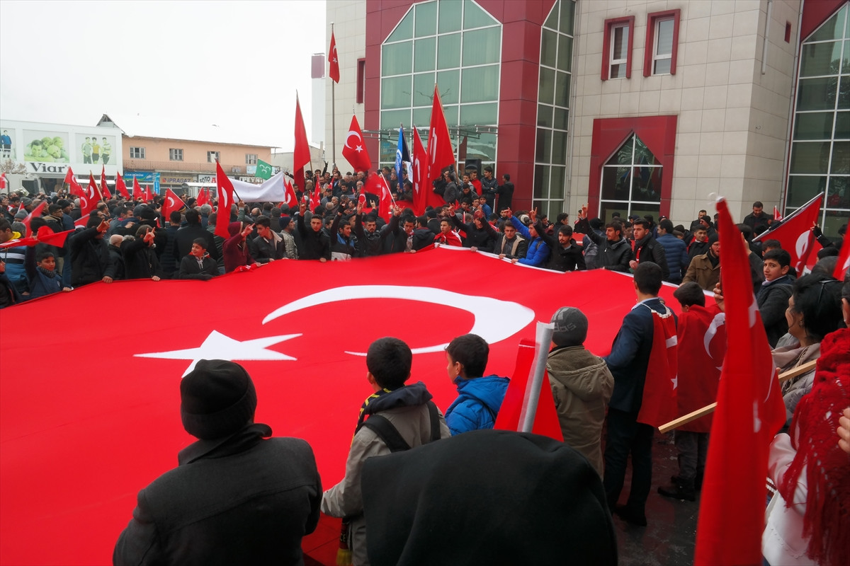 İlçedeki sivil toplum kuruluşları, siyasi parti temsilcilerinin öncülüğünde düzenlenen yürüyüş için Kara Yusuf Paşa Camisi önünde bir araya gelen binlerce vatandaş, "şehitler ölmez vatan bölünmez", "kahrolsun PKK", "Türk Kürt kardeştir, PKK kalleştir", "Ne mutlu Türk'üm diyene" sloganları atarak Hükümet Konağı önündeki 15 Temmuz Demokrasi ve Şehitler Meydanı'na kadar yürüdü.
