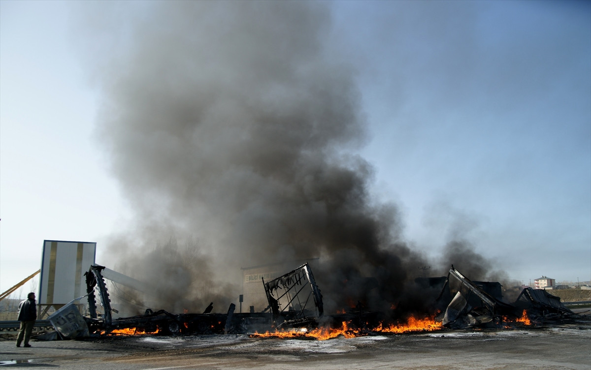 Kontrol altına alınan araçlardaki yapı malzemeleri yeniden alev alınca ekipler, müdahalede bulundu.