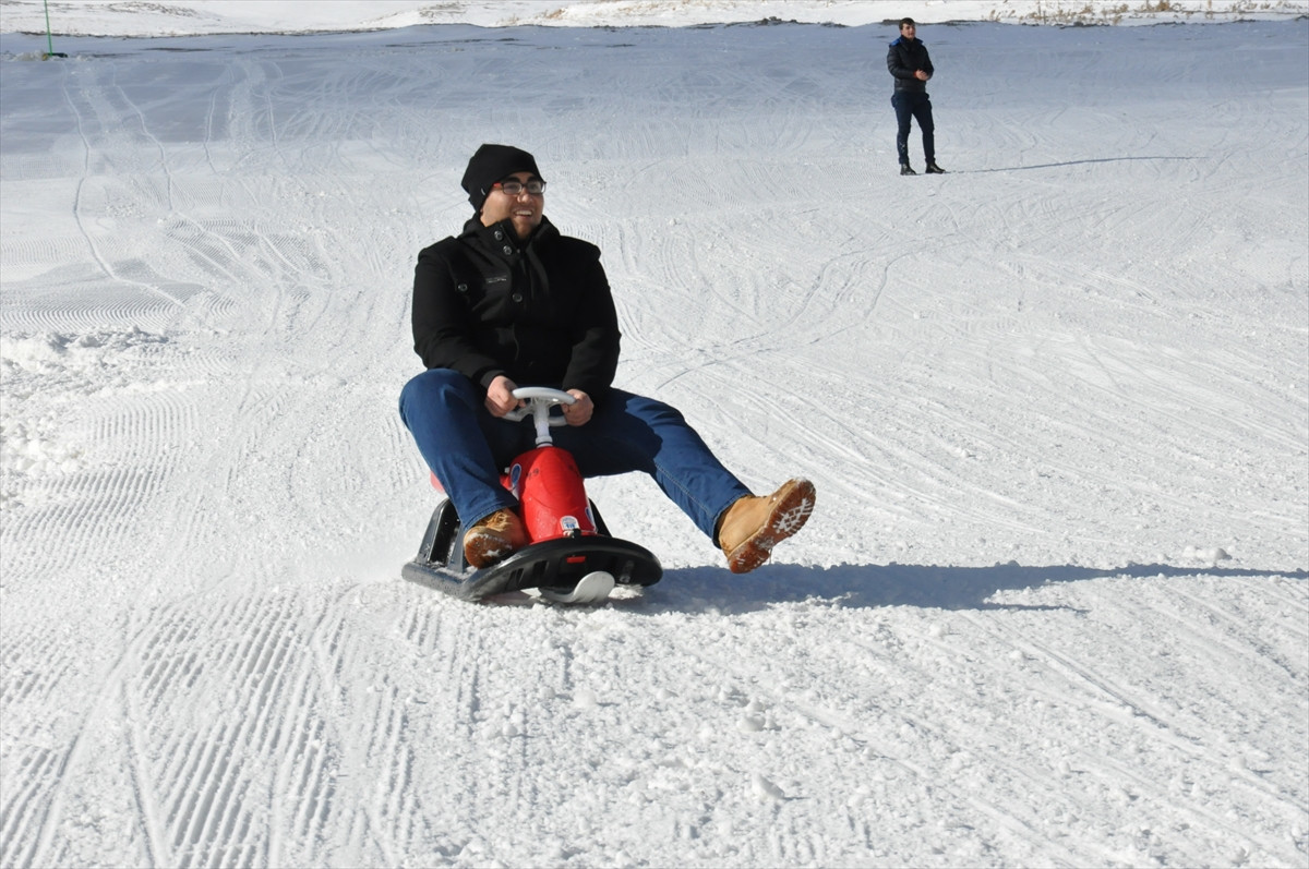 Gençlerin daha çok snowboard yapmayı tercih ettiği kayak merkezinde, kaymayı bilmeyenler ise kızakla eğlenceli zamanlar geçirdi.