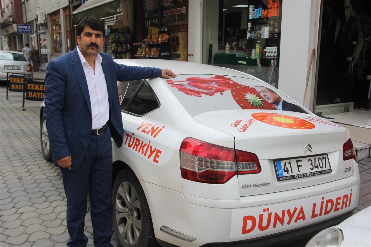 Otomobilini Cumhurbaşkanı Erdoğan'ın fotoğraflarıyla kaplatarak yaşadığı Kocaeli'nin İzmit ilçesinden yola çıkan Özavcı, gazetecilere yaptığı açıklamada, Türkiye turuna çıkmasındaki amacının, Cumhurbaşkanı Erdoğan’a başkanlık konusunda destek vermek olduğunu söyledi.