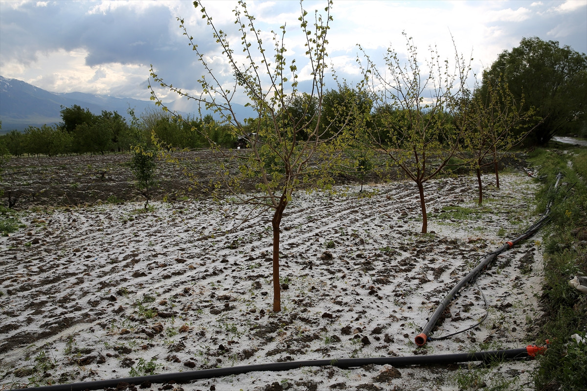 ERZİNCAN (AA) - Erzincan'ın Üzümlü ilçesinde aralıklarla devam eden yağmurun ardından etkili olan dolu, tarım ürünlerine zarar verdi.