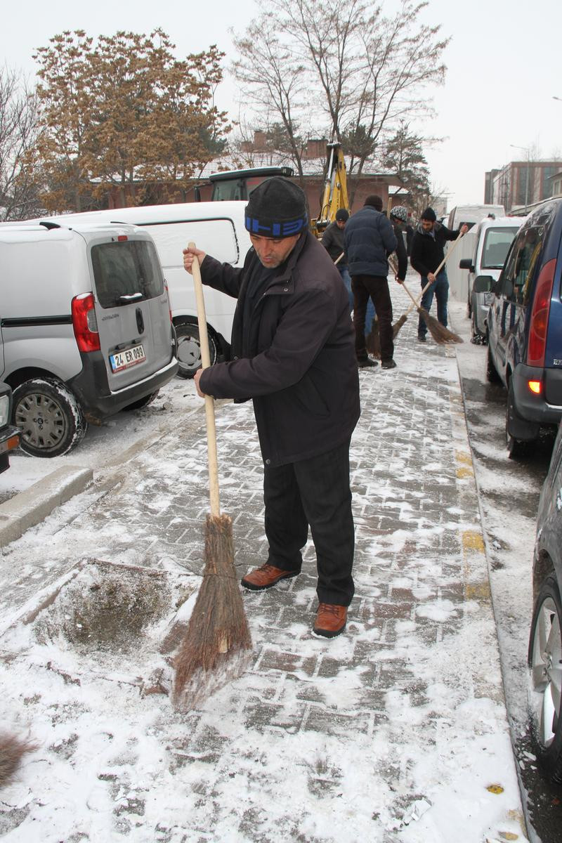 ERZİNCAN (AA) - Erzincan Açık Ceza İnfaz Kurumundaki 12 hükümlü, gönüllü olarak şehir merkezinde bazı mahalle ve sokaklarda kar temizliği yaptı.