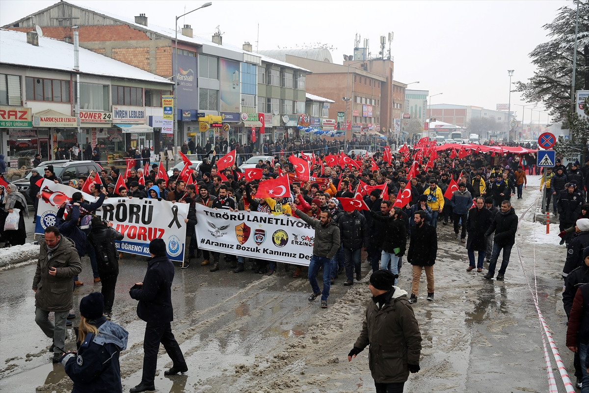 ERZİNCAN (AA) - Erzincan'da, çeşitli sivil toplum kuruluşu ve siyasi parti temsilcileri ile vatandaşlardan oluşan gruptakiler terörü lanetlemek için yürüdü.
