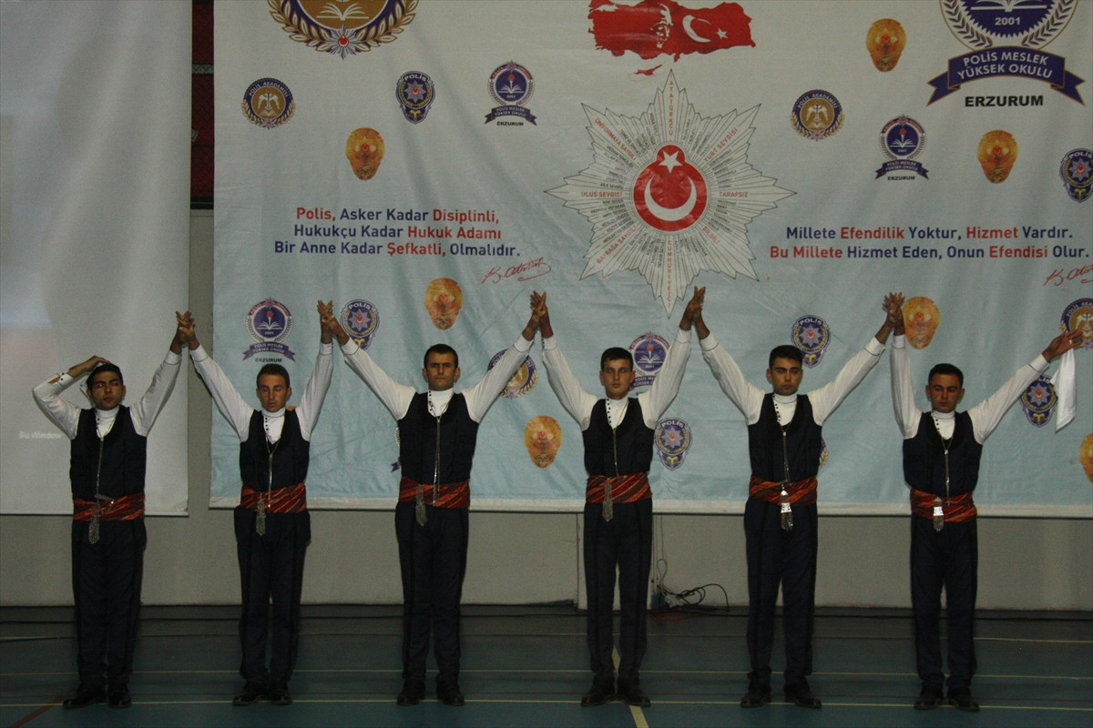 Erzurum Polis Meslek Yüksekokulunda, 2016-2017 eğitim öğretim yılı açılışı dolayısıyla tören düzenlendi. Saygı duruşunda bulunulması, İstiklal Marşı'nın okunmasının ardından okulun folklor ekibi bar oyunu sergiledi.