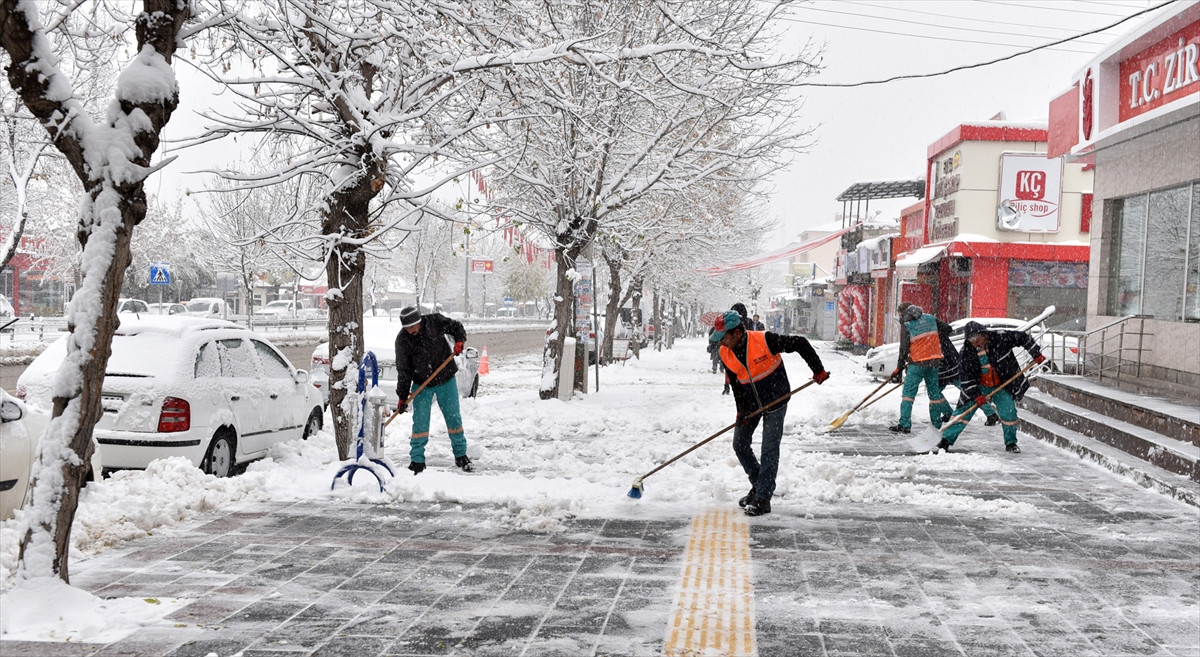 Gece saatlerinden itibaren kırsal alan, ana ve ara arterler, cadde ve sokaklarda karla mücadele çalışması yapan ekipler, araç ve yaya trafiğinin bulunduğu bölgeleri kardan temizledi.