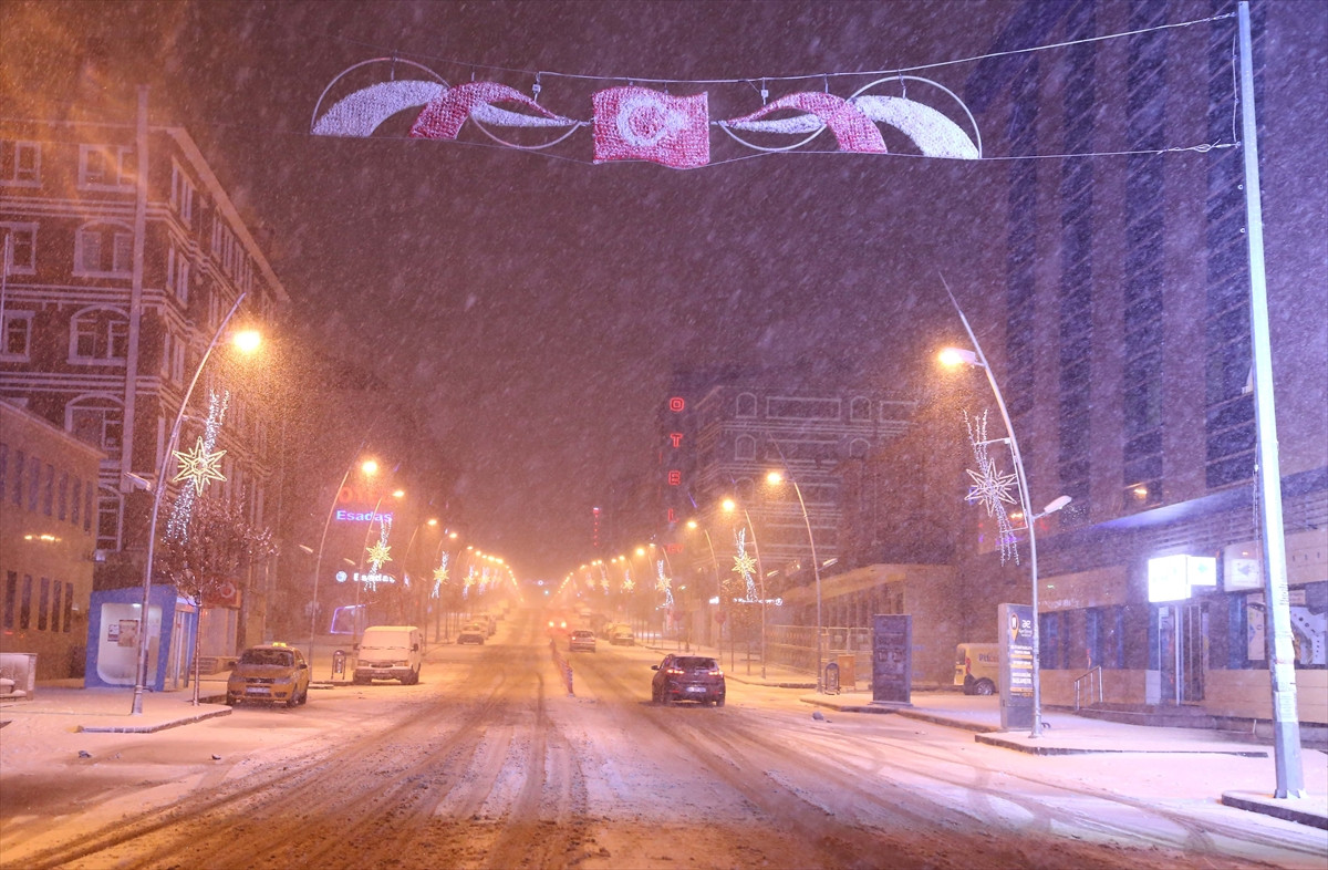 ERZURUM (AA) - Erzurum'da dün akşam başlayıp gece etkisini sürdüren kar yağışı nedeniyle kent merkezi kısa sürede adeta beyaza büründü.