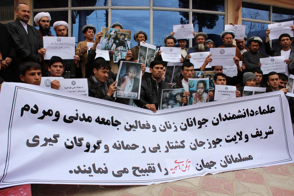 MEZAR-I ŞERİF (AA) - Suriye'de Esed rejiminin Rus savaş uçaklarının desteğiyle Bayırbucak Türkmen bölgesine yönelik saldırıları Afganistan'ın kuzeyindeki Türkmenler tarafından protesto edildi.