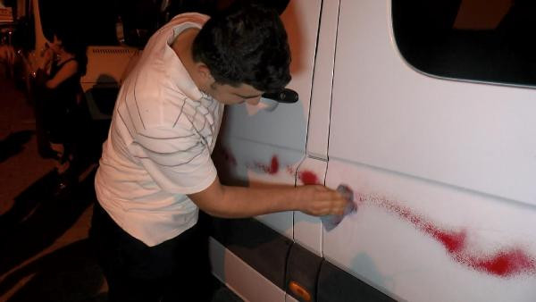 Esenyurt'ta park halindeki 26 araç kırmızı sprey boya ile boyandı. Araçlarının zarar gördüğünü öğrenen mahalleli sokağa döküldü.