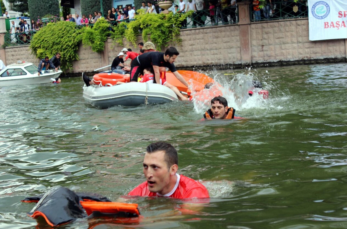 Suya düşen sporculara, yarışma alanında hazır bekleyen AKUT üyeleri müdahale etti. Sporcuların bir kısmı AKUT teknesine alınırken bir kısmı ise yüzerek kıyıya çıktı.