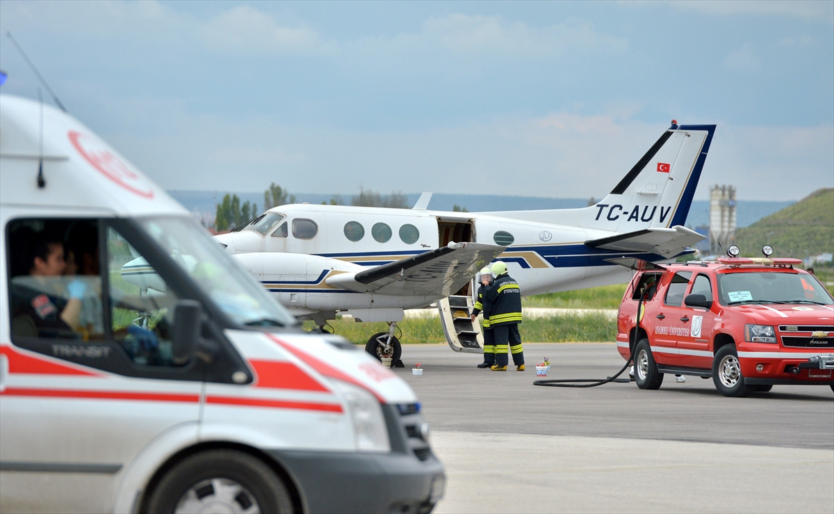 Anadolu Üniversitesi (AÜ) İki Eylül Yerleşkesinde bulunan Hasan Polatkan Havalimanı'ndaki tatbikat, iniş yapan bir eğitim uçağının pistte duramaması sonucu yaptığı kaza senaryosu üzerine gerçekleştirildi.