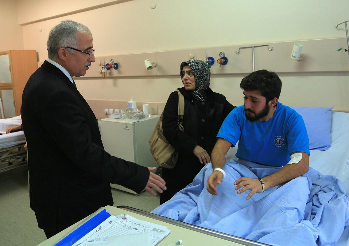 ESKİŞEHİR (AA) - Eskişehir Valisi Güngör Azim Tuna ve Eskişehir Osmangazi Üniversitesi (ESOGÜ) Rektörü Prof. Dr. Hasan Gönen, üniversitenin rugby takımını taşıyan midibüsün devrilmesi sonucu yaralanan 15 öğrenciyi ziyaret etti.