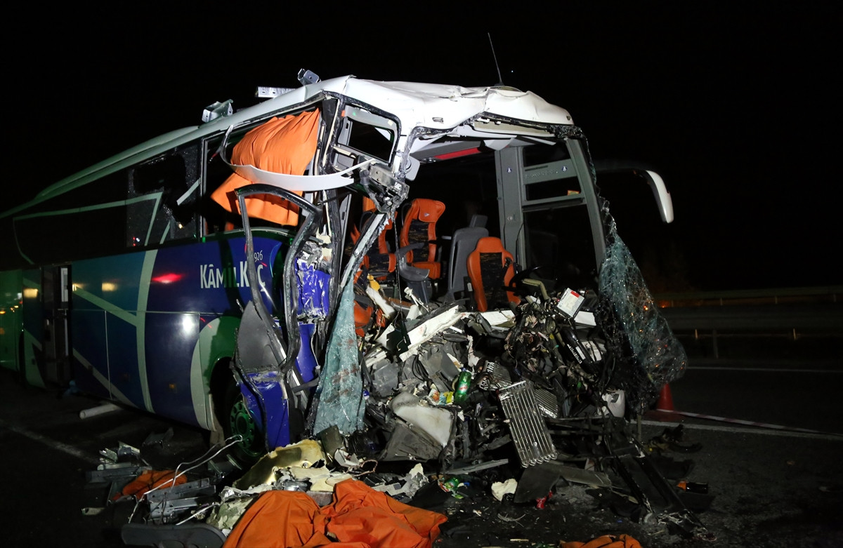 Alınan bilgiye göre, M.K. idaresindeki bir seyahat firmasına ait 16 NED 98 plakalı otobüs, Sivrihisar-Ankara karayolunun 1. kilometresinde önünde seyreden A.K'nın kullandığı 06 JSV 17 plakalı tıra çarptı.